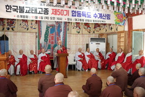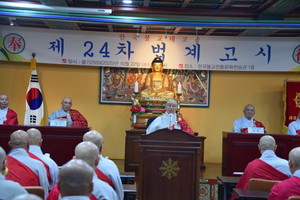 한국불교태고종 제24차 법계고시 입재식이 10월 22일 오후 1시 한국불교전통문화전승관 1층 대회의실에서 개최됐다.이번 24차 법계고시에는 종사 20명, 현사 1명, 종덕 18명, 대덕 21명, 중덕 21명, 선덕 4명으로 총 85명이 응시했다.이날 법계고시 입재식은 총무원 교무부장 정안 스님의 사회로 삼귀의, 반야심경 봉독, 내빈 소개, 고시위원장 휴완 스님 인사말, 총무원장 상진 스님 격려사, 교육원장 재홍 스님 축사, 사홍서원 순으로 진행됐다. 고시위원장 휴완 스님은 인사말에서 “경허 선사께서 ‘중노릇이 어찌 작은 일이겠는가.