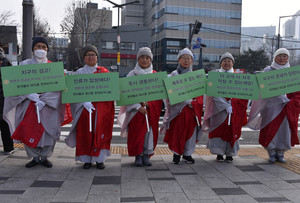 한국불교태고종 전국비구니회(회장 현중 스님)는 1월 6일 오후 2시 서울 종로구 삼청동, 율곡로, 인사동 입구, 열린송현녹지광장 일원에서 새해 첫 ‘기후위기 릴레이 활동’을 펼쳤다.회장 현중 스님은 “이상기후 현상이 계속되고 있는 것은 우리가 환경위기 상황을 심각하게 인식하지 못하고 있기 때문이다”면서 “비구니회는 앞으로도 기후위기 릴레이 활동을 계속 해 나갈 것”이라고 강조했다.-신위현 기자