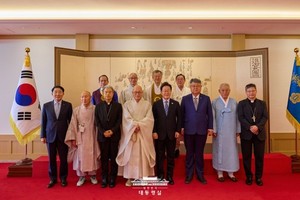 한국불교태고종 총무원장 상진 스님은 7월 9일 이재명 대통령의 초청으로 용산 대통령실에서 종교계 지도자들과 함께 오찬을 갖고 국정 운영과 국민 통합 방안과 관련한 대화를 나눴다.이재명 대통령은 이날 총무원장 상진 스님을 비롯한 각 종교지도자들과 일일이 악수를 나누며 인사를 건넨 뒤 자리에 착석했다.이 대통령은 오찬에 앞서 인사말에서 “취임한 지 한 달 남짓 됐다. 선거 과정에서 걱정했던 것처럼 우리 사회가 지나치게 분열적이고 대립적이고, 갈등이 많이 격화돼있어 참 걱정이다”고 운을 뗐다. 이 대통령은 이어 “지금 한 달 동안은 조금