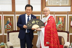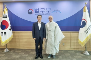 한국불교태고종 총무원장 상진 스님은 8월 29일 정부과천청사에서 정성호 법무부장관을 만나 차담을 가졌다.정 법무부장관은 총무원장 상진 스님이 주석하는 청련사의 남양주 지역구 국회의원으로 활동하며 상진 스님과 우의를 다져온 사이다.총무원장 상진 스님은 이날 방문에서 정 법무부장관의 취임을 축하하며 안정된 법치로 선진민주국가로 국위를 선양해달라고 당부했다.-김종만 기자