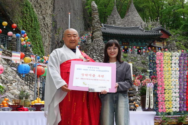 법요식에서는 붓다봉사단에 자발적 봉사요원으로 열심히 참석한 다문화 유학생 10명에게 장학금 전달식이 있었다.