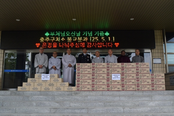 충주구치소 불교분과위원회(회장 지광 스님)는 부처님오신날을 앞두고 지난 5월 1일 충주구치소를 방문해 550인 분의 떡을 기부했다.